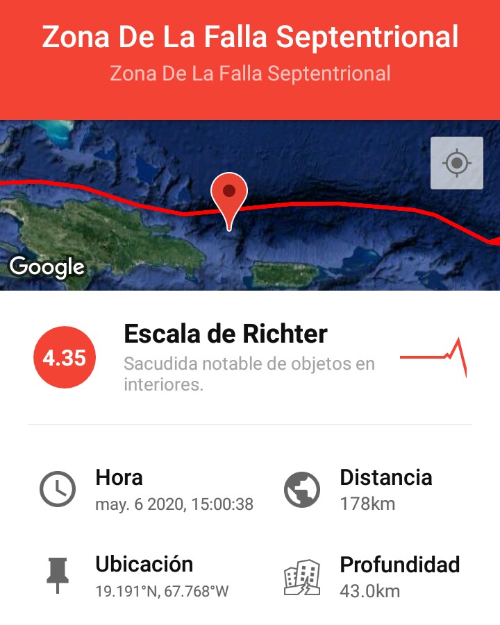 Tiembla el noroeste del país Por:Alexis Delgado Hora:3:15 pm A eso de las 3:00 pm hubo un movimiento sísmico de 4.3 a 178 km del noroeste del pais.Con una profundidad de 43 km. No hay aviso de tsunami para Puerto Rico por este sismo ni para algúna otra región. Compártelo: Compartir en X (Se abre en una ventana nueva) X Comparte en Facebook (Se abre en una ventana nueva) Facebook Me gusta Cargando... Relacionado