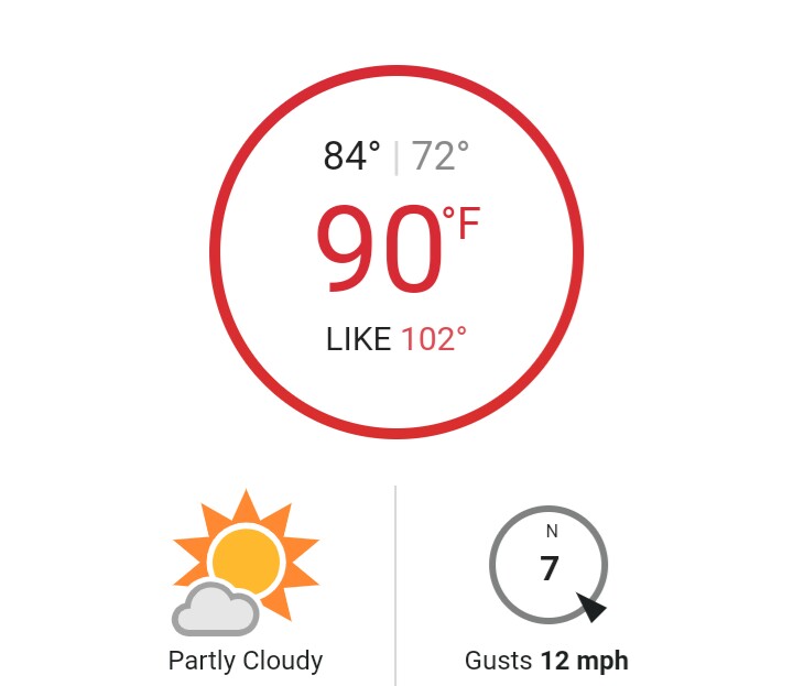 En Ponce hoy la temperatura esta en los 90° con el índice de calor en los 102°.Temperatura mínima ,en los 72°.
