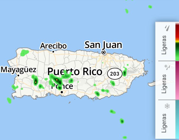 Esta mañana estamos viendo lluvias al este sureste,e interior de la zona.Los aguaceros han sido de leves a moderados en algunos casos.Esta lluvia la necesitamos por las pasadas semanas que hemos enfrentado tiempo mas seco,y los embalses habían ido en descenso.