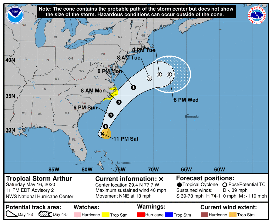 A las 11 pm.El Centro Nacional de Huracanes encontró a Arthur en la posición…