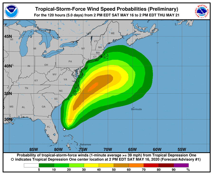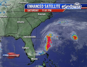 El avion caza huracanes encontró mas organizado el sistema atmosferico que esta al momento su eje al sureste de los Estados Unidos.Se mantiene con la misma trayectoria pasando muy cerca del Carolina del Norte por lo que este estado se encuentra bajo una Vigilancia de Tormenta Tropical.