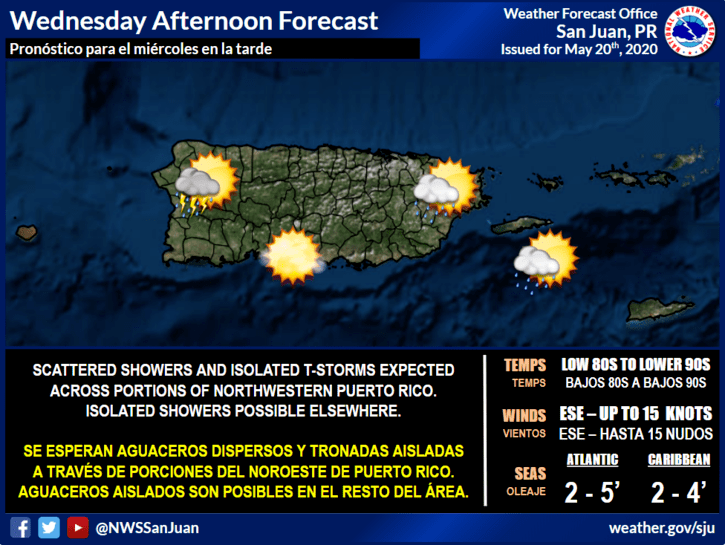 Mañana jueves tenemos nuevamente tiempo mayormente despejado en lo que se acerca mas la humedad relacionada con la Onda tropical,seguimos con las lluvias mañaneras en el este y sureste y aguaceros para el oeste y noroeste de la región.