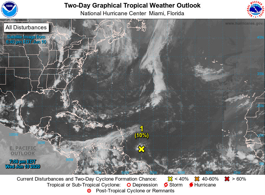 jueves en la noche mientras la onda se mueva al oeste a una