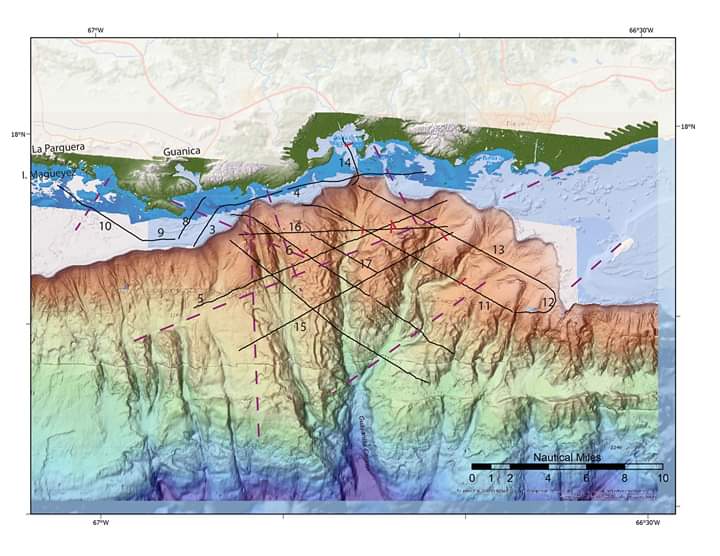 Puerto Rico e islas vecinas están geológicamente localizadas en una región tectónicamente activa y compleja donde la placa del Caribe y la de Norteamérica están en movimiento. El geofísico Uri ten Brink, experto en fallas marinas y sus consecuencias, ya había creado un mapa con aspectos de las profundidades oceánicas del norte y este de Puerto Rico, pero poco se sabía del suelo oceánico del sur de la Isla. Poco después de los dos terremotos más fuertes ocurridos el 28 de diciembre y el 7 de enero, seguido de réplicas (terremotos menores que siguen a uno mayor, concentrados en la zona del terremoto principal), Uri ten Brink junto con otros dos técnicos marinos (Alex Nichols and Eric Moore) organizó una expedición investigativa a bordo del crucero R/V Sultana de la Universidad de Puerto Rico, desde el puerto de La Parguera en Lajas.