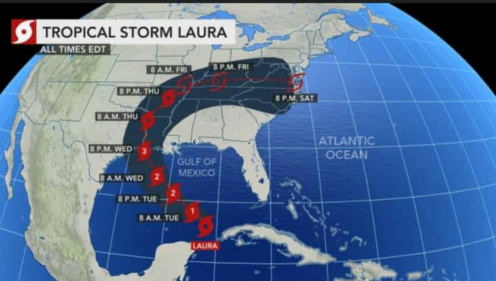 El huracán Laura ya había afectado el Caribe como Tormenta Tropical su posición actual es Location: 24.3°N 87.6°W