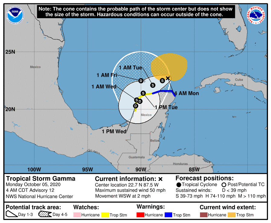 La Península del Yucatán sigue siendo afectada por la tormenta tropical Gamma ,está permanecerá en la zona .Mientras se acerca la Depresión Tropical 26