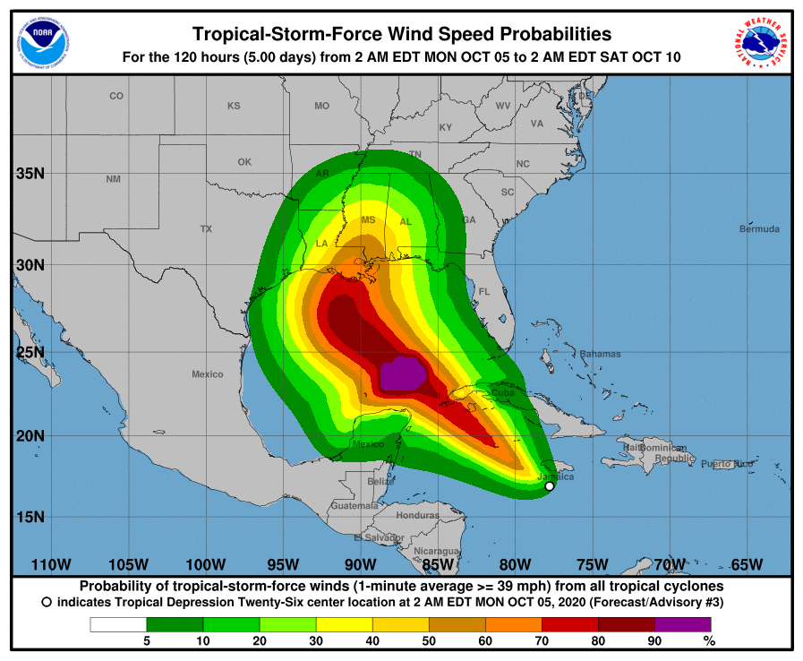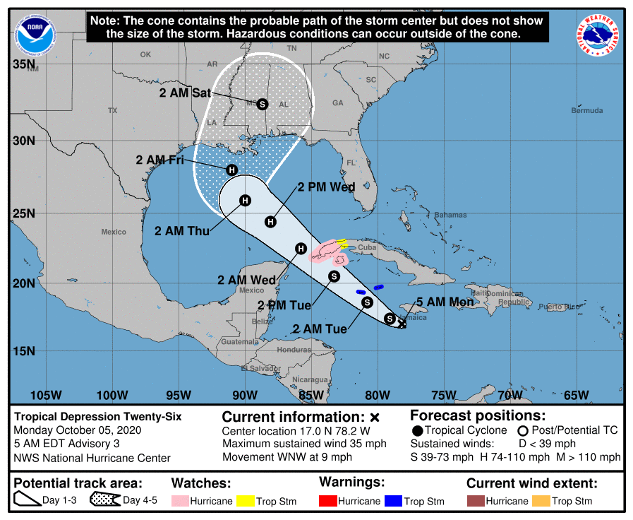 Esa Depresión que se hubica al sur de Jamaica,poco a poco se espera que se vaya fortaleciendo y llegué a ser un huracán para mediados de semana y afecte al sur de los Estados Unidos entre Jueves y Viernes .Los amigos que residen en Louisiana y alrrededores deben prestar interés a este sistema y a los avisos locales para acción inmediata.