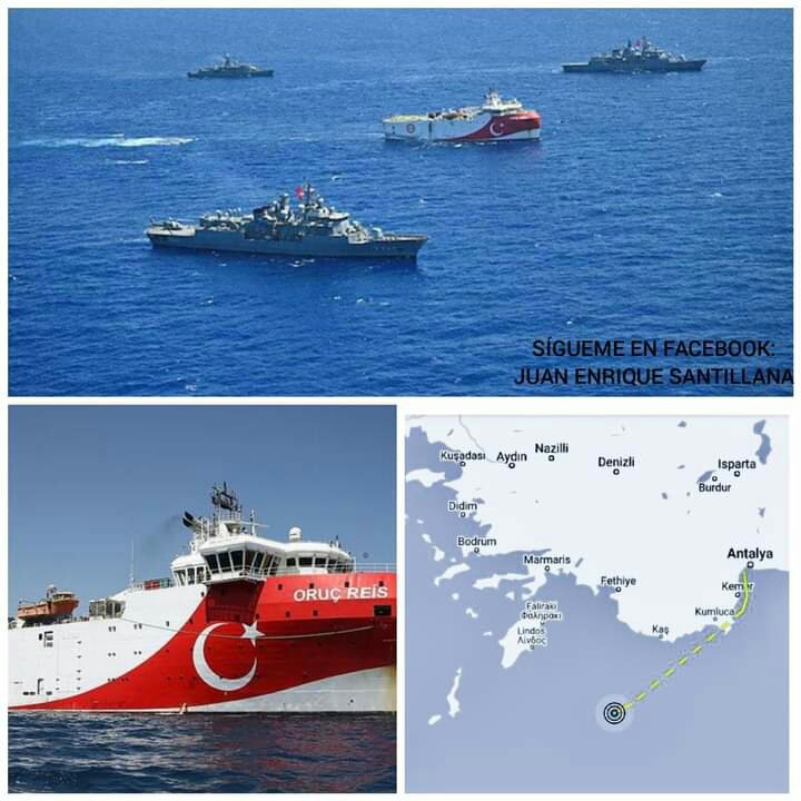 el ( orucreis) ha entrado en aguas territoriales de Grecia. 🇬🇷 - Un enfrentamiento militar se puede dar en cualquier momento entre Turquía y Grecia. Si el barco Avanza más hacia la isla griega.