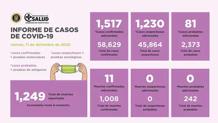 La sifra en Puerto Rico de contagios por el Coronavirus continúa en aumento.En 24 horas 1,517 son nuevos casos confirmados