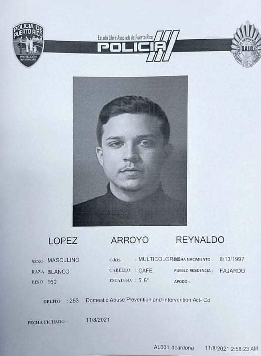 Reynaldo Lopez Fajardo (prensa Policia): Agentes adscritos al Cuerpo de Investigaciones Criminales Área Fajardo radicaron cargos criminales por Ley 54 de Violencia de Género contra Reinaldo Joel López Arroyo, de 24 años de edad, residente en Fajardo, quien es pastor de la Iglesia Ekklesia, ubicada en el pueblo de Fajardo.