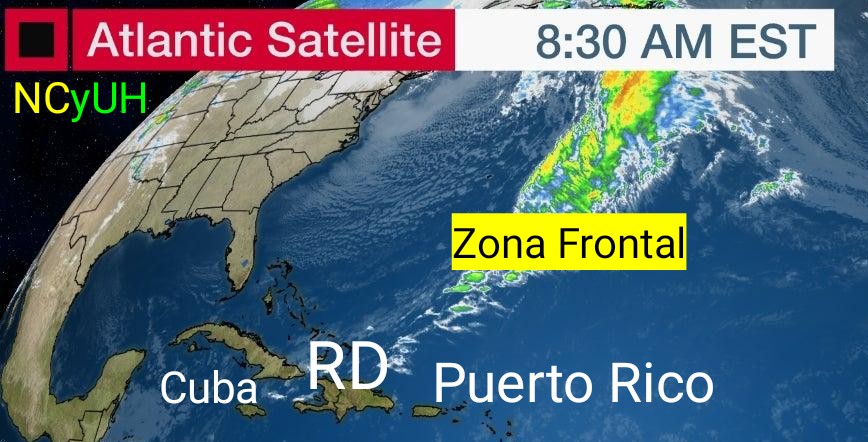 La zona frontal que salio de los Estados Unidos se mantendrá con la mayor parte de su nubosidad al norte del Caribe,pero traerá inestabilidad en la hora mas caliente del día