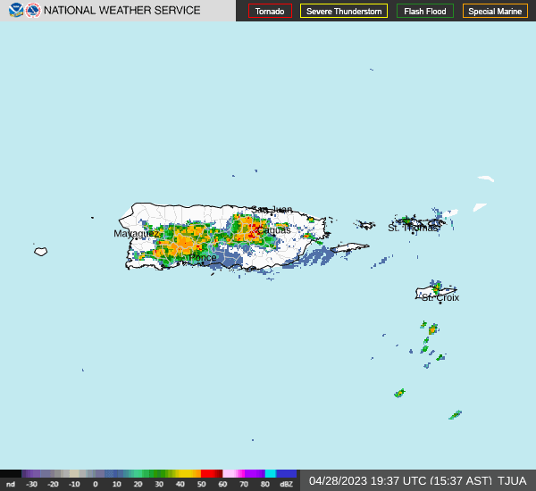 * A las 414 p. m. AST, el radar Doppler indicó tormentas eléctricas que producían