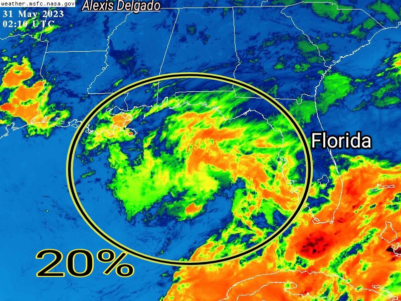 🌩Surge sistema de Baja Presion con posibilidad de desarrollo ciclonico en aguas del Golfo de Mexico se dirige a la Florida al momento..