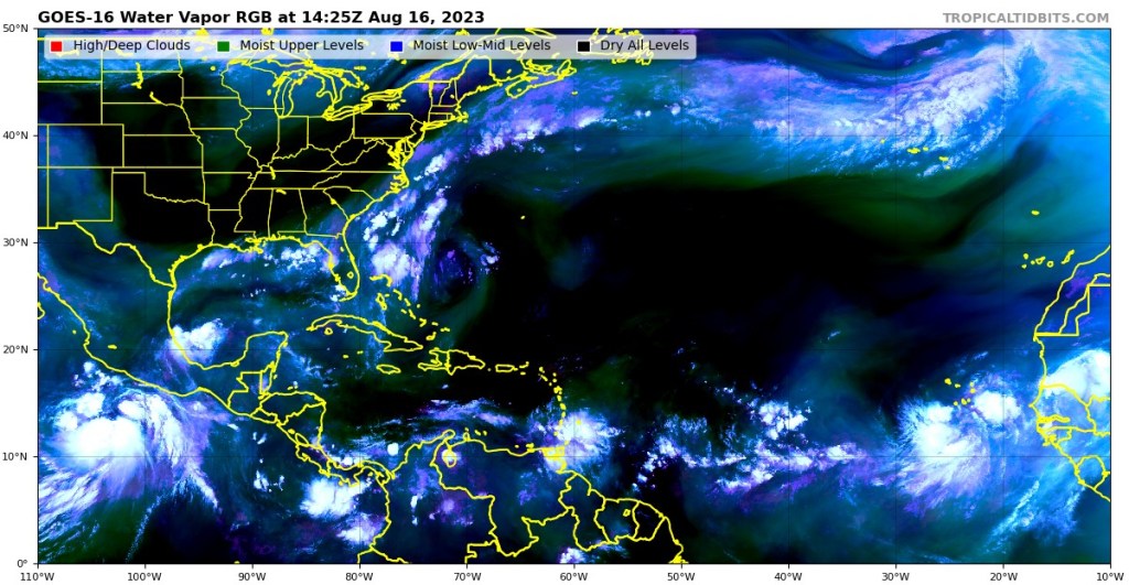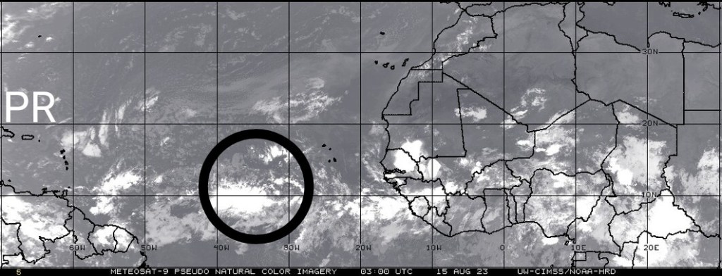 ➡️Onda Tropical vigilada al centro del Atlántico se espera continúe desarrollándose ciclonicamente,mientras se mueve oeste o oeste noroeste a razón de 10mph