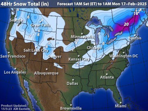 En los Estados Unidos ,varias bajas presiones afectan centro ,norte y noreste de los Estados Unidos las proximas 72 horas .Mucha lluvia helada y nieve para esa zona,temperaturas por debajo de los 20°